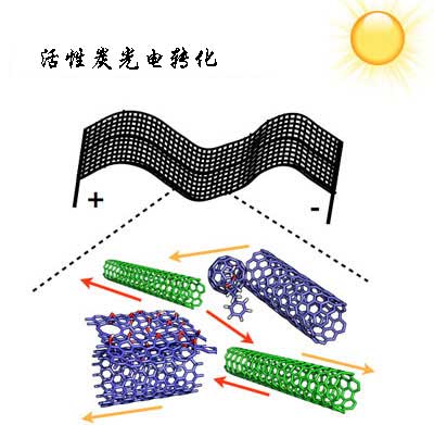 活性炭材料是光伏太陽能電池的優(yōu)秀候選者:自然界中含量高,具有高光吸收性,并保持優(yōu)異的熱穩(wěn)定性和光穩(wěn)定性。其靈感來源于一般的碳納米材料可以是金屬或半導(dǎo)體,只需要一種金屬和一種半導(dǎo)體來制造太陽能電池。
